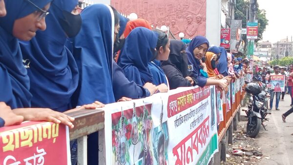 গৃহবধূ নুসরাতের খুনিদের গ্রেপ্তারের দাবিতে মানববন্ধন